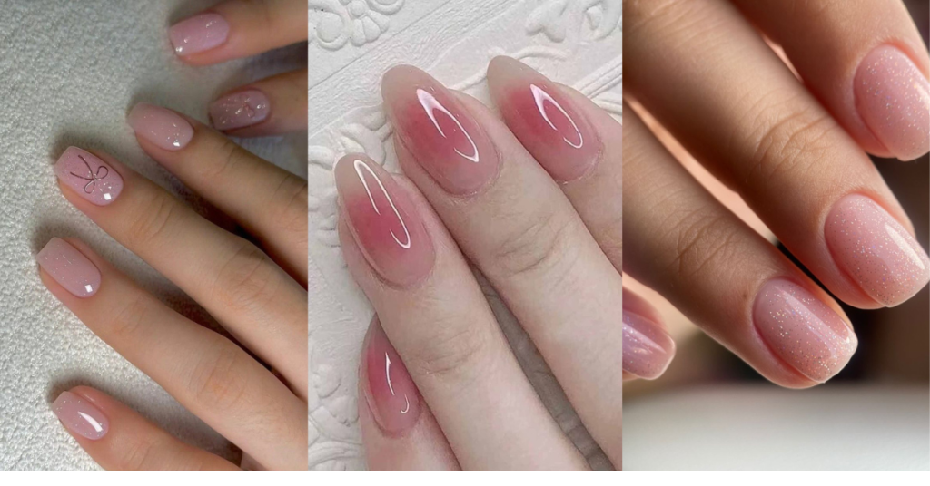 • Base nude o rosa claro.